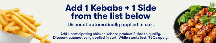 Chicken Kebabs + Side for $13 Same Day Delivery in Australia
