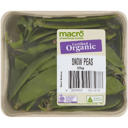 With a fresh crunch and mild sweetness, our Australian-grown Macro Organic Snow Peas are produced using organic and sustainable farming practices, and are free from synthetic chemicals such as pesticides, herbicides and GM ingredients.