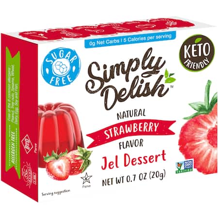 Erythritol, vegetable setting agent (carrageenan), acidity regulators, natural colourant (beet), natural flavouring (strawberry), stevia extract