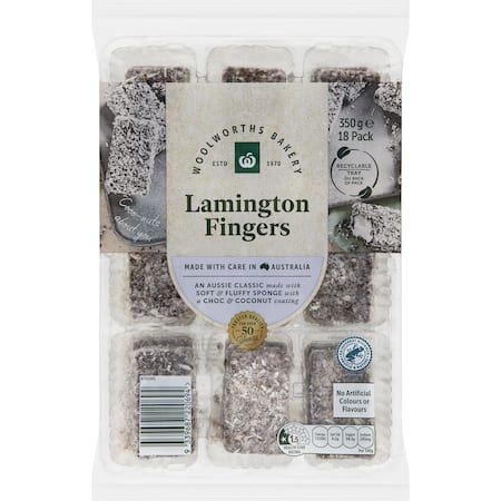 Cake (55%) (Sugar, Wheat Flour, Water, Egg Powder,Humectants (420, 1520), Emulsifiers (471, 475, 481), Raising Agents (450, Sodium Bicarbonate, 341),Starches (Wheat, Potato, Tapioca), Salt, Preservatives (202, 200), Acidity Regulator (570)), Choc Coating (34%) (Sugar, Water, Cocoa Powder (1) (2%),Canola Oil, Thickeners (1422, Agar, Guar Gum, Xanthan Gum), Natural Flavouring, Acidity Regulator (575), Preservative (202)), Coconut (11%) (Coconut,Preservative (223) (Sulphites)), Processing Aid (Emulsifier 322 (Soy)), (1) Rainforest Alliance Certified