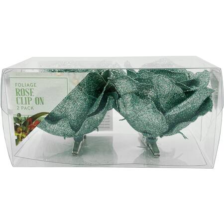 Get Christmas Foliage Rose Clip On Teal 2 pack delivered to your doorsteps in minutes | AU