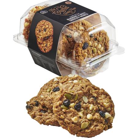 BARLEYMAX FLOUR (19%), RAW SUGAR, WHITE CHOCOLATE( 9%) (SUGAR, COCOA BUTTER, MILK SOLIDS, EMULSIFIERS (322 SOY), NATURAL FLAVOUR), WHEAT FLOUR, VEGETAB LE MARGARINE (VEGETABLE OIL (CONTAINS PALM),WATER, SALT,EMULSIFIERS (471, 472C), ANTIOXIDANT(304), NA TURAL FLAVOUR, NATURAL COLOUR (160A)),GLUCOSE (CON TAINS PRESERVATIVE (220)), BLUEBERRIES(6%) (BLUEBE RRIES, SUGAR, SUNFLOWER OIL), PUMPKINSEEDS, ROLLED OATS,BUTTER (MILK), HONEY,DESICCATEDCOCONUT CHIPS (CONTAINS PRESERVATIVE (223), EMULSIFIER (322 SOY ),NATURAL FLAVOUR, RAISING AGENTS (450, 500), CASS IA.