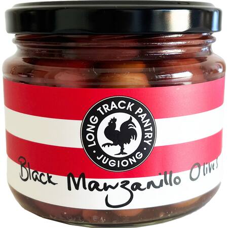 Get Long Track Pantry Black Manzanillo Olives 300g delivered to your doorsteps in minutes | AU