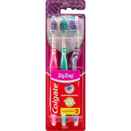 Get Colgate Manual Toothbrush Zig Zag Soft Antibacterial Bristles 3 pack delivered to your doorsteps in minutes | AU