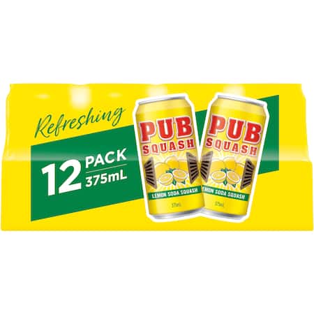 Get Tru Blu Pub Squash Lemon Soda Squash Cans 375mL x 12 pack delivered to your doorsteps in minutes | AU