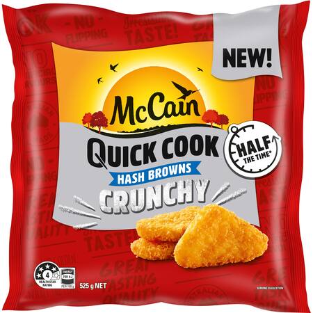 Get McCain Quick Cook Hash Browns Crunchy 525g delivered to your doorsteps in minutes | AU