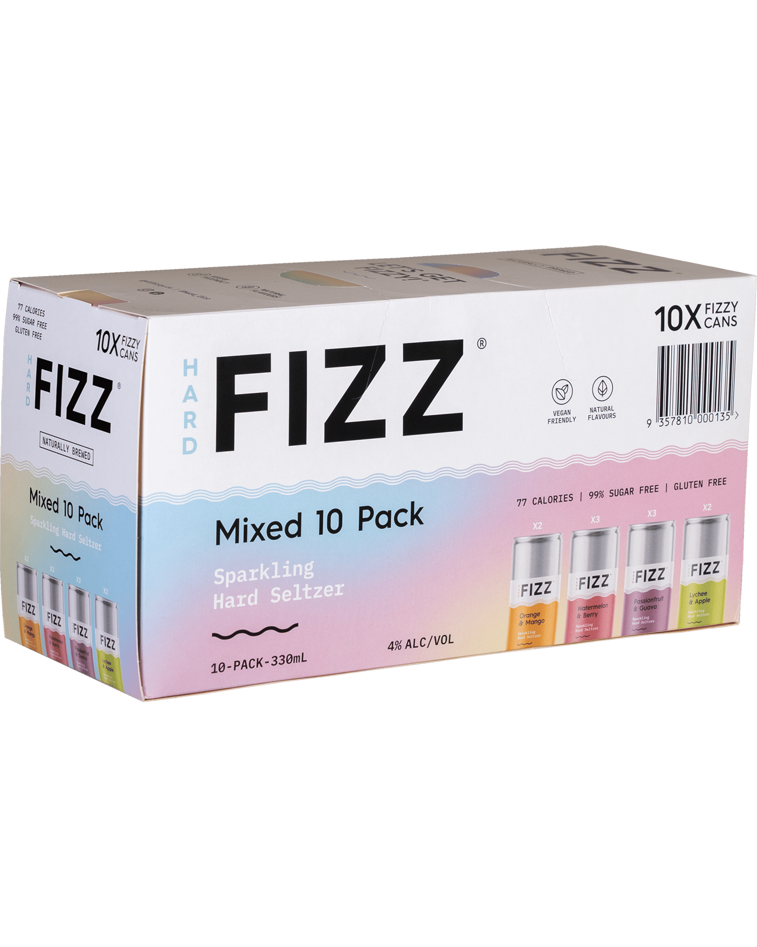 The Ultimate party starter. Grab a case and assemble a crew. This mixed pack has something for everyone and an easy shop for those looking FIZZ with friends. Contains 3 x Watermelon & Berry, 3x Passionfruit & Guava, 2 x Orange & Mango and 2 x Lychee & Apple FIZZ flavours.