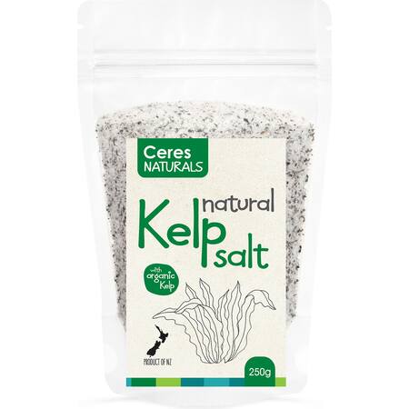 Ceres Naturals Kelp Salt is a combination of natural sea salt,blended with certified organic kelp, both harvested from unpolluted waters around the South Island of New Zealand. The salt is unrefined, and contains no of your Recommended Dietary Intake (RDI). nasty stuff like anti-caking agents or bleaches. And the kelp is collected fresh, then dried at low temperatures (below 47°C) to lock in its inherent nutrients. Ceres Naturals Kelp Salt offers a bunch of Iodine - 43%