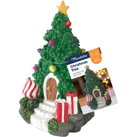 This colourful Christmas Tree Fairy House is perfect for anyone looking to add something a little more colourful to their Christmas décor. This fairy house is battery operated and can be used indoor or outdoor. Resin material, approx. 19cm Height. Battery operated 1 x AAA (batteries not included), steady on function, Cool White LED Caution: Decoration only, this is not a toy.