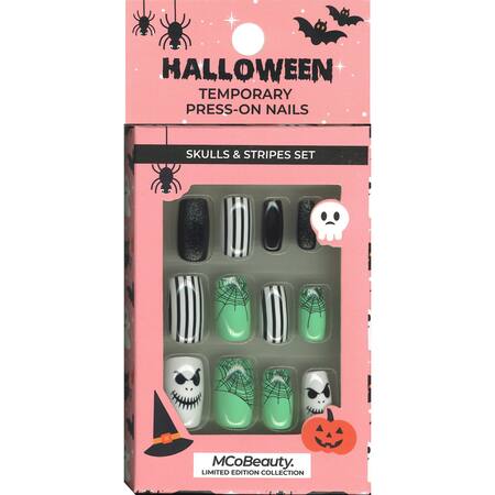 Get MCoBeauty Halloween Temporary Press On Nails Skulls & Stripes Set Each delivered to your doorsteps in minutes | AU
