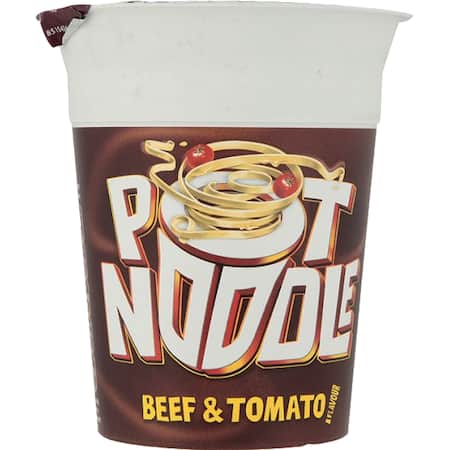 Noodles in a Beef and Tomato flavour sauce with vegetables and a little sachet of tomato sauce.