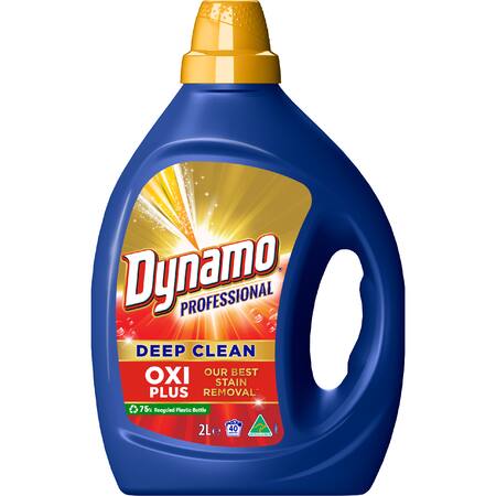 KEEP OUT OF REACH OF CHILDREN. IF SWALLOWED: Remove as much product as possible from the mouth. Rinse mouth with water and seek medical attention. EYE IRRIRANT: If product contacts the eyes, rinse thoroughly with water. Seek medical attention if irritation persists. Avoid contact with sensitive skin. For medical advice call 13 11 26 (Australia) 0800 764 766 (New Zealand)Dynamo Professional Oxi Plus Laundry Detergent Liquid, 2 Litre, 40 washloads, Deep Clean, Our Best Stain Removal, First Time!
