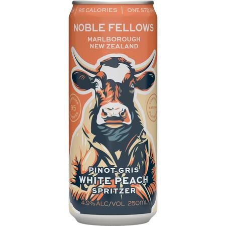 Get Noble Fellows Pinot Gris White Peach Spritzer Can 250mL delivered to your doorsteps in minutes | AU