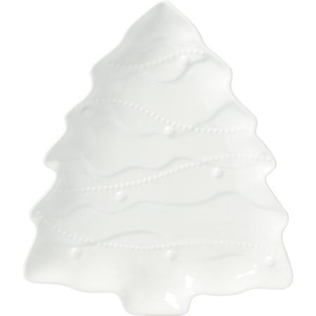 Tree shape serving plate with gold rim. Great as a table decoration or for serving yummy treats. Overall length: 27.7cm
