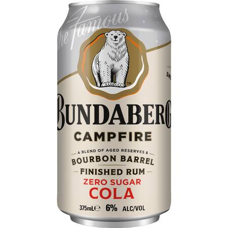 Get Bundaberg Campfire Bourbon Barrel Finished Rum & Zero Sugar Cola Can 375mL delivered to your doorsteps in minutes | AU