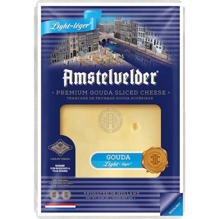 Premium Dutch Gouda Slices, enjoy delectable taste with less fat, for a healthier alternative, Kosher C-Y and KLP