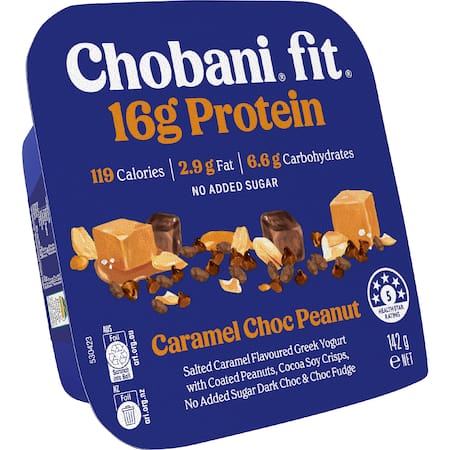 Salted Caramel Flavoured Yogurt (93%) Skim Milk, Water, Rice Starch, Natural Flavours, Natural Colour (Caramel), Plant Based Sweetener (Steviol Glycosides), Vegetable Gum (Pectin), Salt, Mineral Salt (Calcium Citrate), Acidity Regulators (Citric Acid, Sodium Citrate), Enzyme (Lactase), Live Cultures (Milk), Caramel Flavoured Peanuts & Peanuts (3%), Cocoa Soy Crisps (2%), No Added Sugar Dark Choc (2%) (Sweeteners (Maltitol, Steviol Glycosides)) (Soy), No Added Sugar Choc Flavoured Fudge (1%) (Sweeteners (Maltitol, Steviol Glycosides)) (Soy).