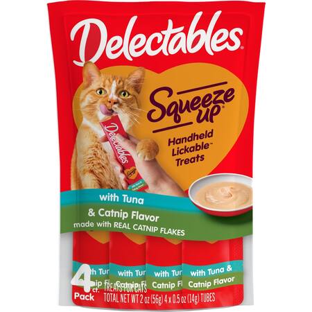 Get Delectables Squeeze Up Lickable Cat Treats Tuna & Catnip 14g x 4 pack delivered to your doorsteps in minutes | AU
