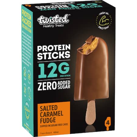We've travelled a long way to your freezer, so please be sure to take care as broken sticks rarely occur but may cause a choking or injury risk.Water, Choc Dip (Vegetable Fat, Maltitol, Cocoa Solids, Milk Solids, Soy Lecithin, Salt, Canola Oil), Milk Protein Concentrate, Full Cream Milk Powder, Soluble Tapioca Fibre (IMO), Collagen, Erythritol, Glycerine, Natural Flavour, Salt, Emulsifier (471), Gums (Guar, Locust Bean), Thickeners (466, 407), Monk Fruit Extract.