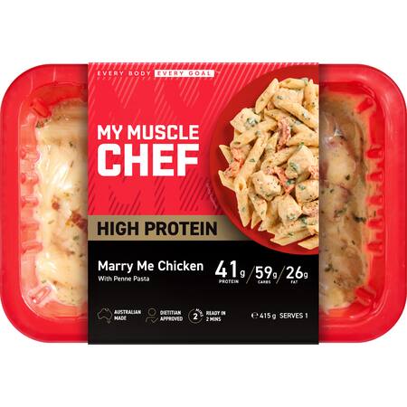**Warning: Despite careful inspection, some bones and bone fragments may remain. **Chicken Breast (30%), Penne Pasta (26%) (Durum **Wheat** Semolina), **Milk**, Vegetables (10%) (Onion, Sundried Tomatoes (**Sulphites**) (3.5%), Spinach, Garlic), Cream (4%) (**Milk**), **Wheat** Flour, Butter (**Milk**), Vegetable Oil, Parmesan Cheese (**Milk**), Vinegar, Lemon Juice, Spices, Brown Sugar, Salt, Chicken Stock Powder, Herbs, Thickener (Guar Gum).