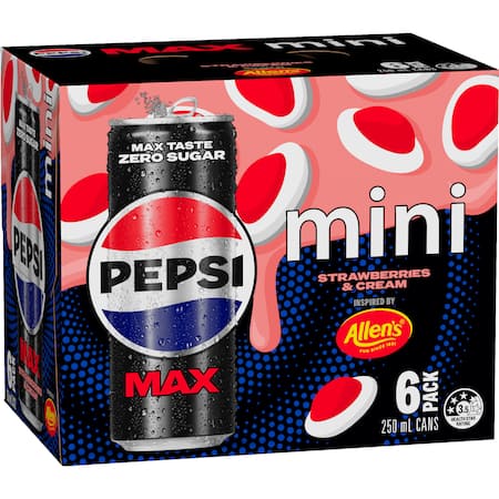 Get Pepsi Max Cans Strawberries & Cream 250mL x 6 pack delivered to your doorsteps in minutes | AU