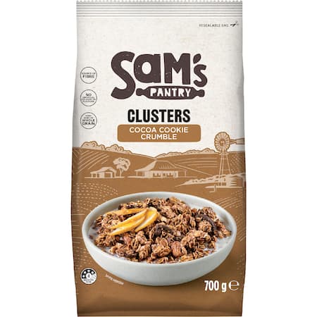 Great care has been taken to remove all shells and stones from all of our natural ingredients, however some may remain.Whole Grain Oats (63%), Glucose, Golden Syrup, Sunflower Oil, Choc Cookie Pieces (4.5%), Raw Sugar, Cocoa Powder (2.5%), Puffed Rice, Diced Almonds (0.5%), Coconut Chips (0.5%), Natural Flavour, Antioxidant (Vitamin E).