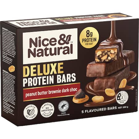 Roasted Peanuts (22%), Dark Choc Compound (20%) (Sugar, Vegetable Fat, Cocoa Powder*, Emulsifier (Soy Lecithin), Natural Flavour), Peanut Butter Compound (15%) (Sugar, Peanut Butter (4.5%), Vegetable Fat, Milk Solids, Cocoa Powder*, Emulsifiers (Soy Lecithin, 492), Natural Flavour, Antioxidant (307b)), Soy Protein Crisp (14%) (Soy Protein Isolate, Tapioca Starch, Salt), Glucose Syrup, Chicory Root Fibre, Soy Protein Isolate, Glycerine, Sunflower Oil, Cocoa Powder*, Vegetable Fat, Natural Flavours (Milk), Salt, Emulsifier (Soy Lecithin), Traces of Almonds, Cashews. *Rainforest Alliance Certified. Find out more at ra.org.