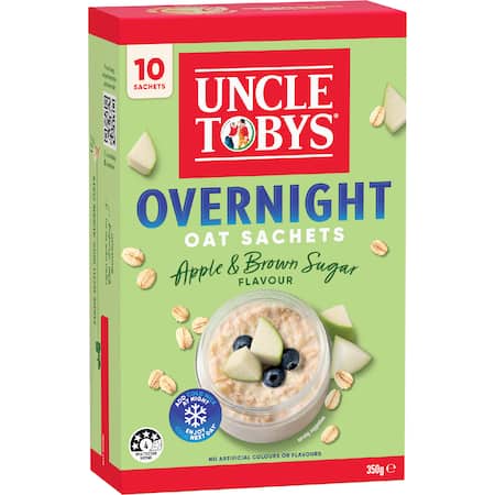 Uncle Tobys Whole Grain Rolled Oats (78%), Sugar, Apple (6%) Preservative (223) ( Sulphites )^, Skim Milk Powder, Natural Flavour. ^ Some Dried Fruits Contain Sulphites To Maintain Natural Colour and Shelf Life.