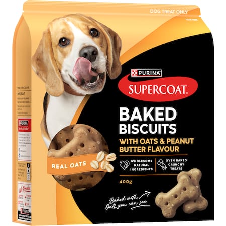 Get Supercoat Baked Biscuits Dog Treats With Oats & Peanut Butter Flavour 400g delivered to your doorsteps in minutes | AU