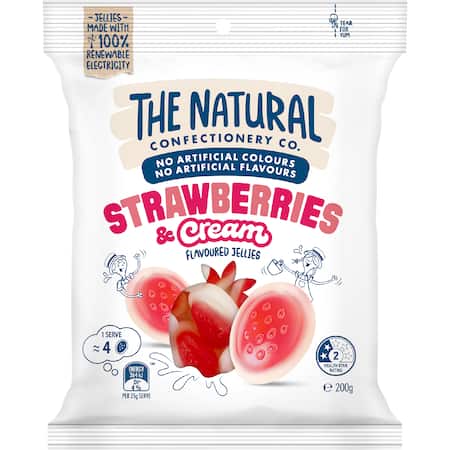 Glucose Syrup, Cane Sugar, Thickener (Acid Modified Wheat Starch), Gelatine, Food Acid (Citric), Fruit Juice Concentrate, Natural Flavours, Natural Food Colour (Anthocyanins), Glazing Agent (Vegetable Oil, Carnauba Wax), Cornstarch.