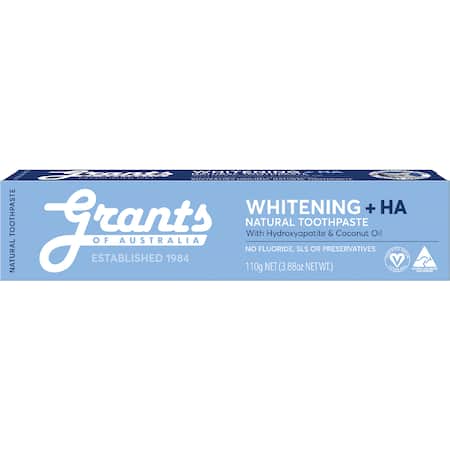 Aqua (Water), Calcium Carbonate, Glycerin (Vegetable), Hydroxyapatite, Sodium Bicarbonate (Baking Soda), Xylitol, Sodium Methyl Cocoyl Taurate (from Coconut), Mentha Viridis (Spearmint) Leaf Oil, Mentha Piperita (Peppermint) Oil, Cellulose Gum, Silica, Stevioside (Stevia), Menthol, Cocos Nucifera Oil, D-Limonene.