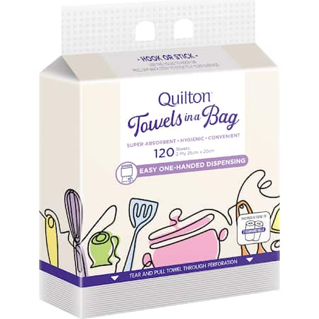 Get Quilton Towel In A Bag Paper Sheets 120 pack delivered to your doorsteps in minutes | AU