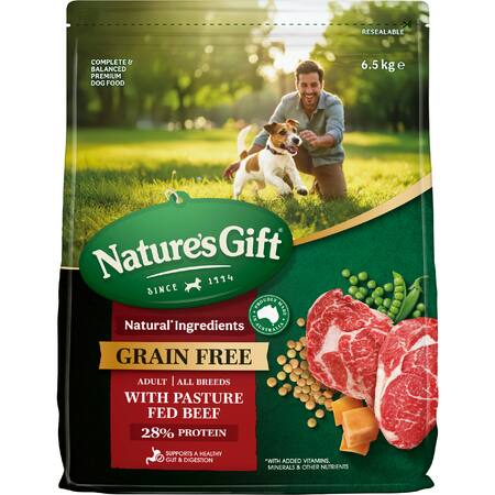 Poultry, Peas, Lentils, Tapioca Starch, Beef (equiv. to 18%), Vegetable Meal (Soy), Animal Fat (Poultry and/or Beef), Sweet Potato, Beet Pulp, Natural Palatant, Whole Linseed, Salt, Potassium Chloride, Choline Chloride, Dried Chicory Root, Vitamins and Minerals, Natural Antioxidants, Yucca Schidigera Extract.