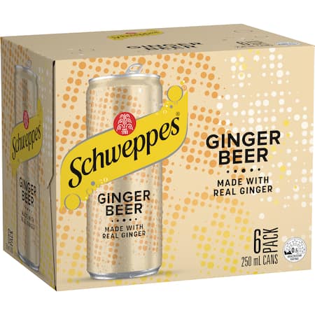 Get Schweppes Ginger Beer Cans 250mL x 6 pack delivered to your doorsteps in minutes | AU