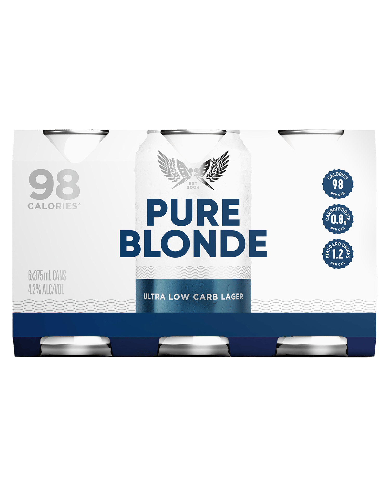 The first Australian Ultra Low Carbohydrate beer, Pure Blonde is a refreshing, full flavoured lager, brewed with no preservatives. Pure Blonde is brewed longer to break down more natural sugars than usual, to deliver an easy drinking, ultra low carb brew with 80% less carbohydrates than regular beer and 50% fewer calories than wine per ml.