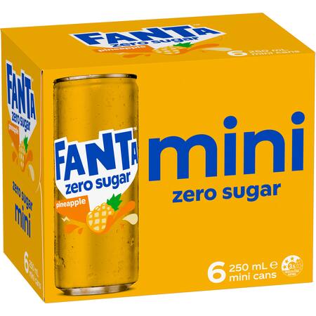 Fanta Pineapple Zero Sugar 6x250mL Soft Drink Multipack Mini Can