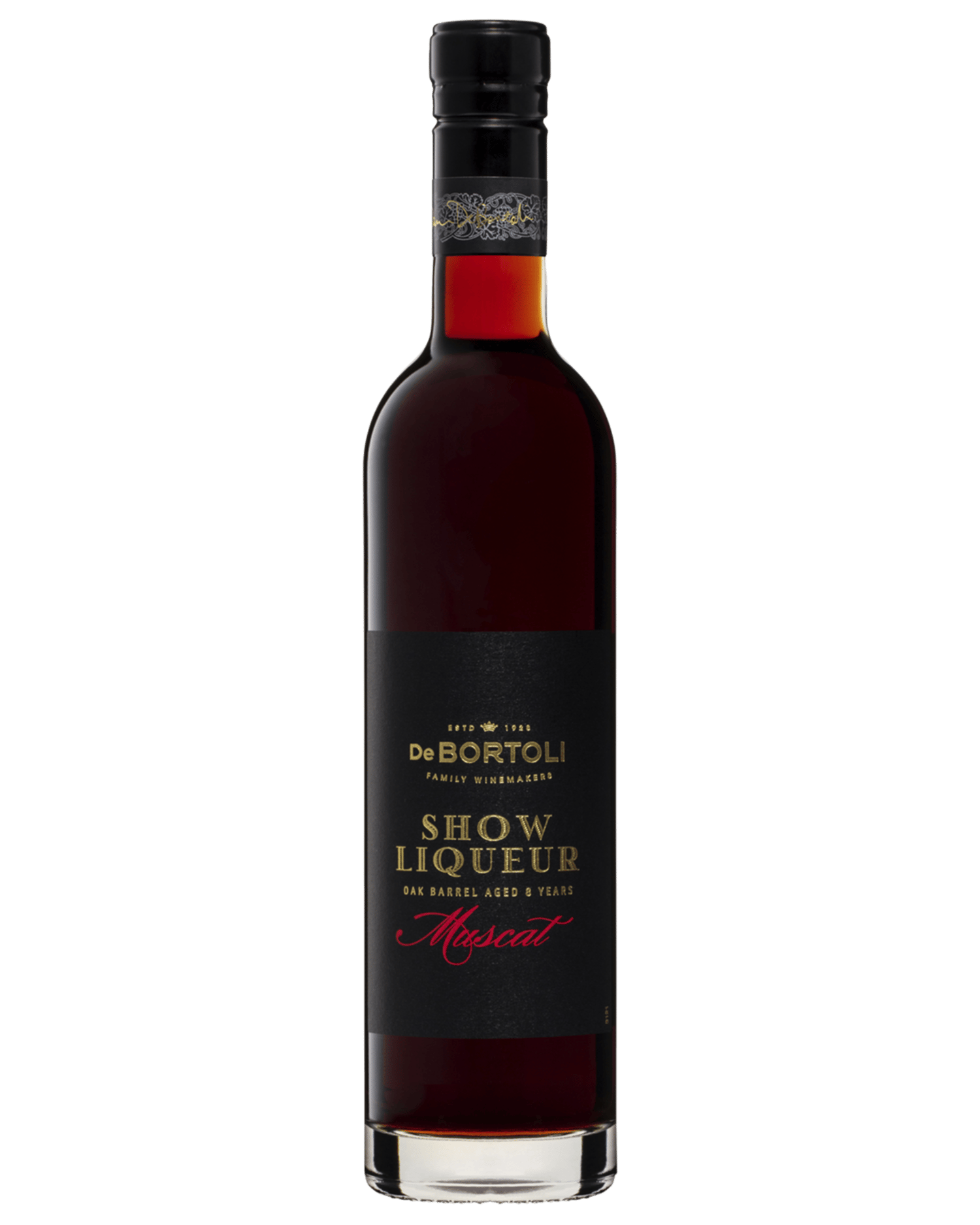 De Bortoli Show Liqueur Muscat is a lovely 8 year old Muscat that shows rich, concentrated old wood characters and aromas which continue to the palate showing Muscat flavours of raisins, coffee and caramel. The oak is beautifully integrated with a long, lingering finish that is smooth and delicious. Enjoy with rich desserts and full flavoured cheeses.