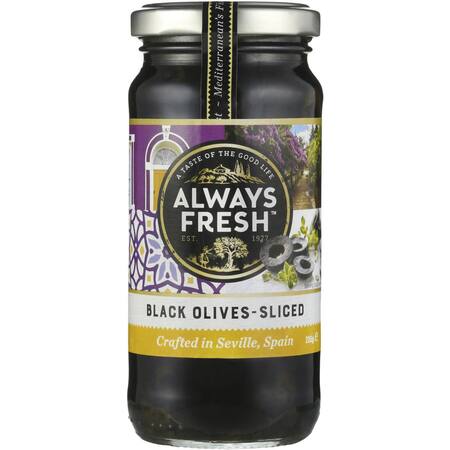 Black Hojiblanca Olives (49%), Water, Salt, Colour (579)