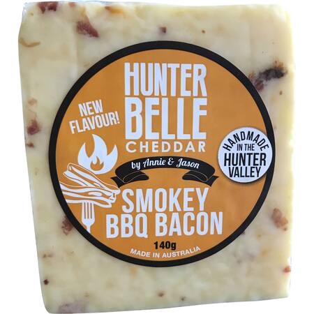 Get Hunter Belle Dairy Co Dairy Cheese Smokey BBQ Bacon Cheddar 140G delivered to your doorsteps in minutes | AU