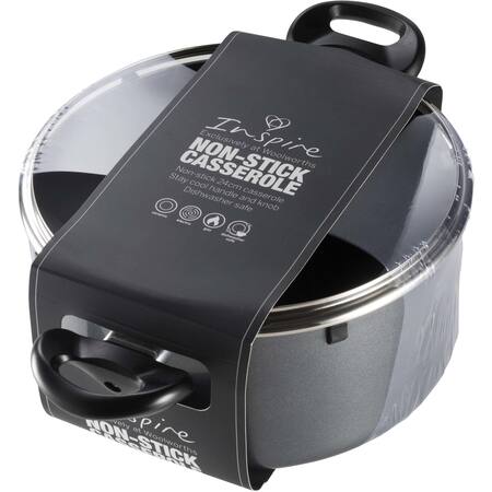 Pressed Aluminium, 24 x 11cm, Stay cool handle, dishwasher safe, clear glass lid with steam vent