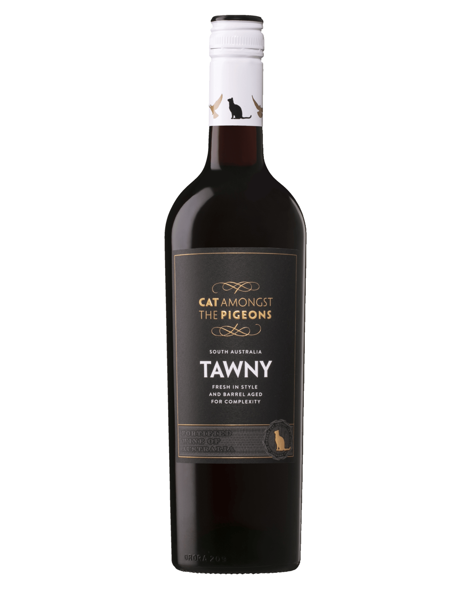 The Cat Amongst The Pigeons story is a recipe of vision, courage and the unordinary. Blended from carefully selected parcels, this Tawny exhibits a bright medium tawny red colour with alluring aromas of caramel and lifted spice. Crafted in a fresh style, the palate is clean and lively with the benefit of aged characters and complexity through time spent maturing in a combination of seasoned French and American oak barrels.
