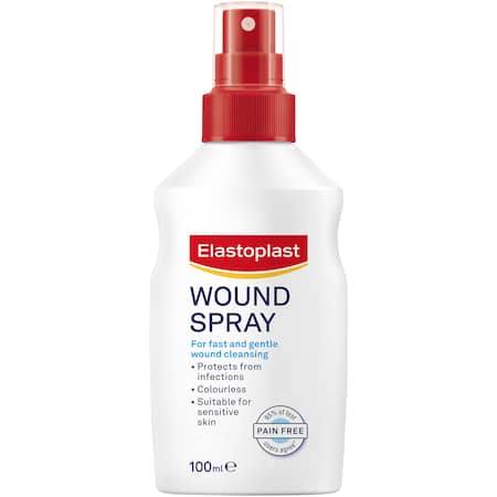 Elastoplast wound healing spray is used for the cleansing of acute wounds to prevent infection. It is also suitable for chronic and post-operative wound care as per doctor’s instructions.The Elastoplast Wound Spray also helps to remove crusts or clotted dressings. <br /><br />It is free of alcohol and does not cause pain or stinging during application, or dry the skin. Elastoplast Wound Spray is a pain-free and effective way to cleanse wounds from dirt and bacteria and prevent from wound infections.<br /><br />The solution is transparent, so it won’t stain clothing like tinted products containing for example Iodine or Eosin.<br /><br />Skin-friendly and suitable for children, Elastoplast Wound Spray is an effective and gentle way to support the wound healing process. The handy spray bottle of the Elastoplast Wound Spray works well at any angle, which makes it ideal for on-the-go first aid, sports and outdoor activities.