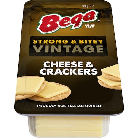 Get Bega Vintage Cheese & Crackers Strong & Bitey 38g delivered to your doorsteps in minutes | AU