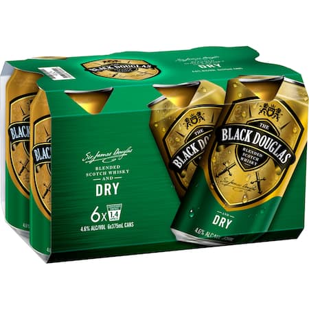 Get Black Douglas Whisky & Dry Cans 375mL x 6 pack delivered to your doorsteps in minutes | AU