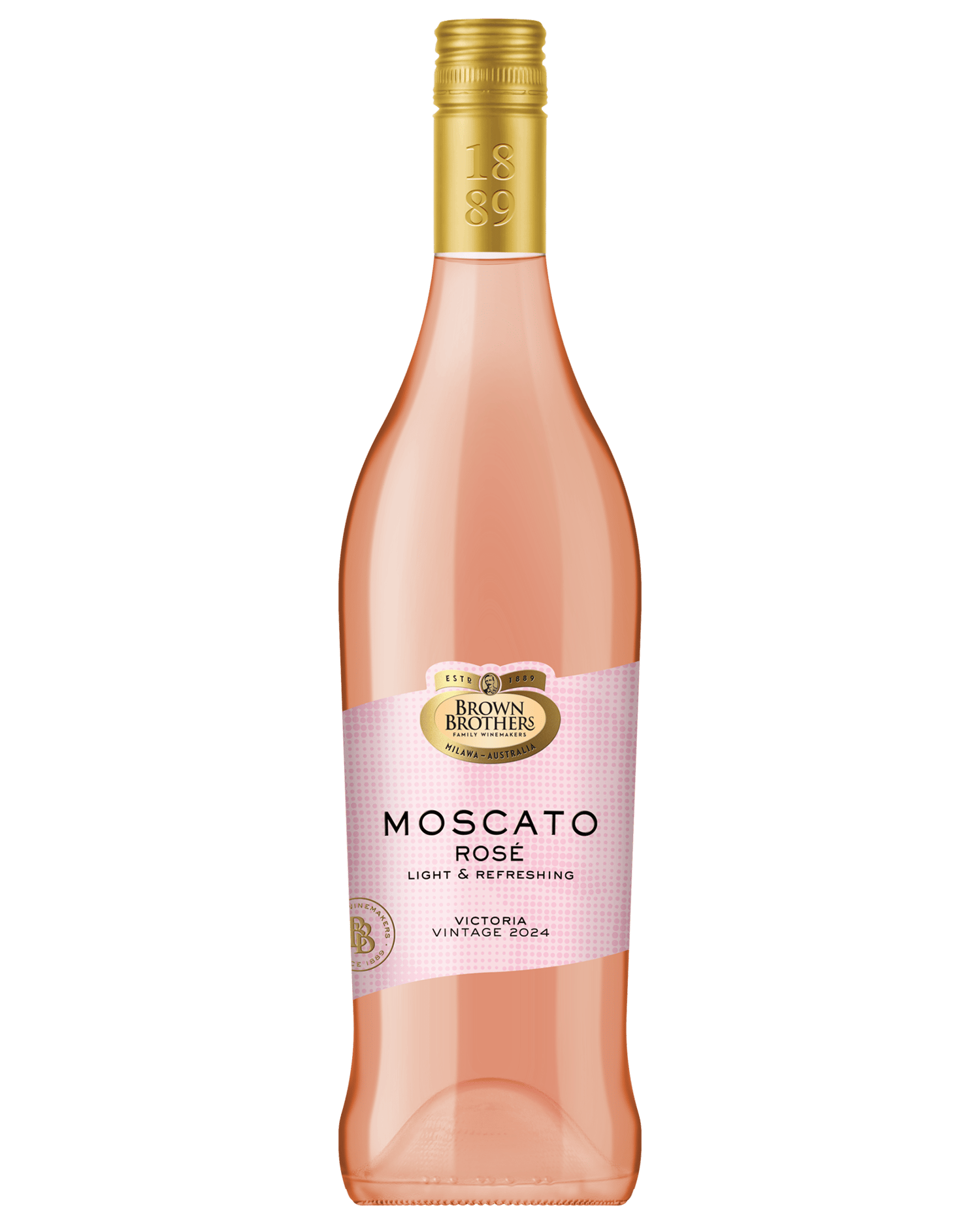 The Brown Brothers Moscato Rose has a vibrant strawberry pink hue, giving it a light and delicate appearance. Rose petal and red berry aromas along with freshly crushed grapes and a spicy perfume dominate the nose. These characters follow through to the palate along with a fruitiness that is balanced by acidity and spritz. Some retained bubble in the wine from fermentation gives a mild frizzante effect resulting in a lively and fresh wine.