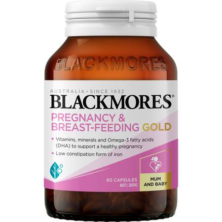 Formulated to support a healthy pregnancy for Mum and Bub. Contains 20 important nutrients including Folic acid, Iron, DHA and Vitamin D.<BR><BR>Blackmores Pregnancy & Breast-Feeding Gold provides an ideal dose of 20 important nutrients for mother including folic acid, iodine and vitamin D3, with supporting nutrients for baby. <br /><br />With omega-3 DHA to support baby’s brain and nervous system development, it also contains a lower constipation iron which is gentle on the digestive system. Blackmores Pregnancy and Breast-feeding Gold is formulated on the nutrient requirements for Australian pregnant and breast-feeding women.<BR><BR>Blackmores Pregnancy & Breast-Feeding Gold Provides 20 important nutrients in total including an ideal dose of:<BR><BR>500 microgram of folic acid which, if taken daily for one month before conception and during pregnancy, may reduce the risk of having a child with spina bifida/neural tube defects<BR><BR>150 microgram of iodine for baby's brain<BR><BR>Lower constipation iron<BR><BR>Odourless and concentrated fish oil, rich in DHA for baby's brain and nervous system development.<BR>