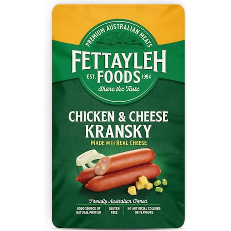 Chicken (76%), Water, Cheese (Milk), Potato Starch , Soy Potein Isolate, Salt, Spices, Mineral Salt ( 451), Dextrose (Maize), Hydrolysed Vegetable Powde r (Maize), Antioxidant (316), Preservative (250), Fermented Rice, Edible Beef Collagen Casing, Colou r