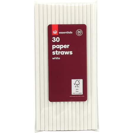 Get Essentials Paper Straws White 30 Pack delivered to your doorsteps in minutes | AU