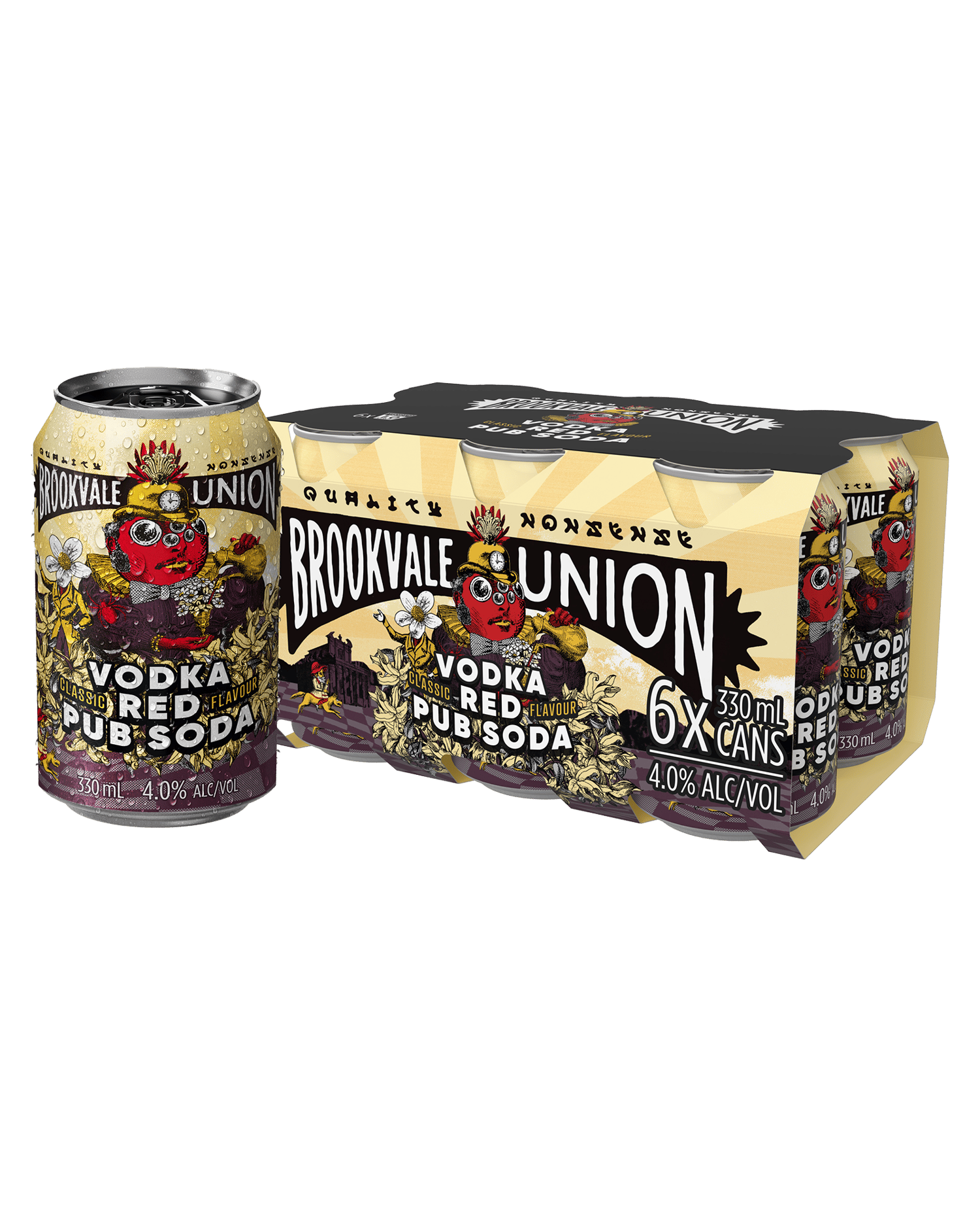 Vodka Red Pub Soda in a convenient 330mL can. Elevate your beverage experience with the crisp and refreshing taste of this exceptional concoction. Crafted with the finest vodka, paired harmoniously with the effervescence of soda, every sip is a celebration of flavour.Whether you're unwinding after a long day or gathering with friends for a memorable evening, Vodka Red Pub Soda is your ideal companion. Its compact single-can packaging ensures that you can enjoy its vibrant profile anytime, anywhere.Indulge in the bold spirit of vodka infused with the playful fizziness of soda – a modern twist on a timeless classic. Embrace the moment and delight in the delightful symphony of flavours that Vodka Red Pub Soda brings to every occasion.
