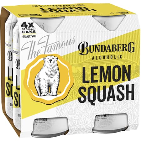 Get Bundaberg Alcoholic Lemon Squash Can 375mL x 4 Pack delivered to your doorsteps in minutes | AU